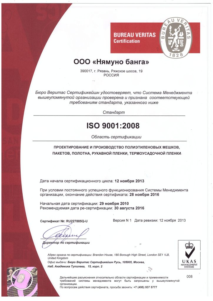 2010 год – Система Менеджмента Качества компании сертифицирована на соответствие стандарту ИСО 9001:2008